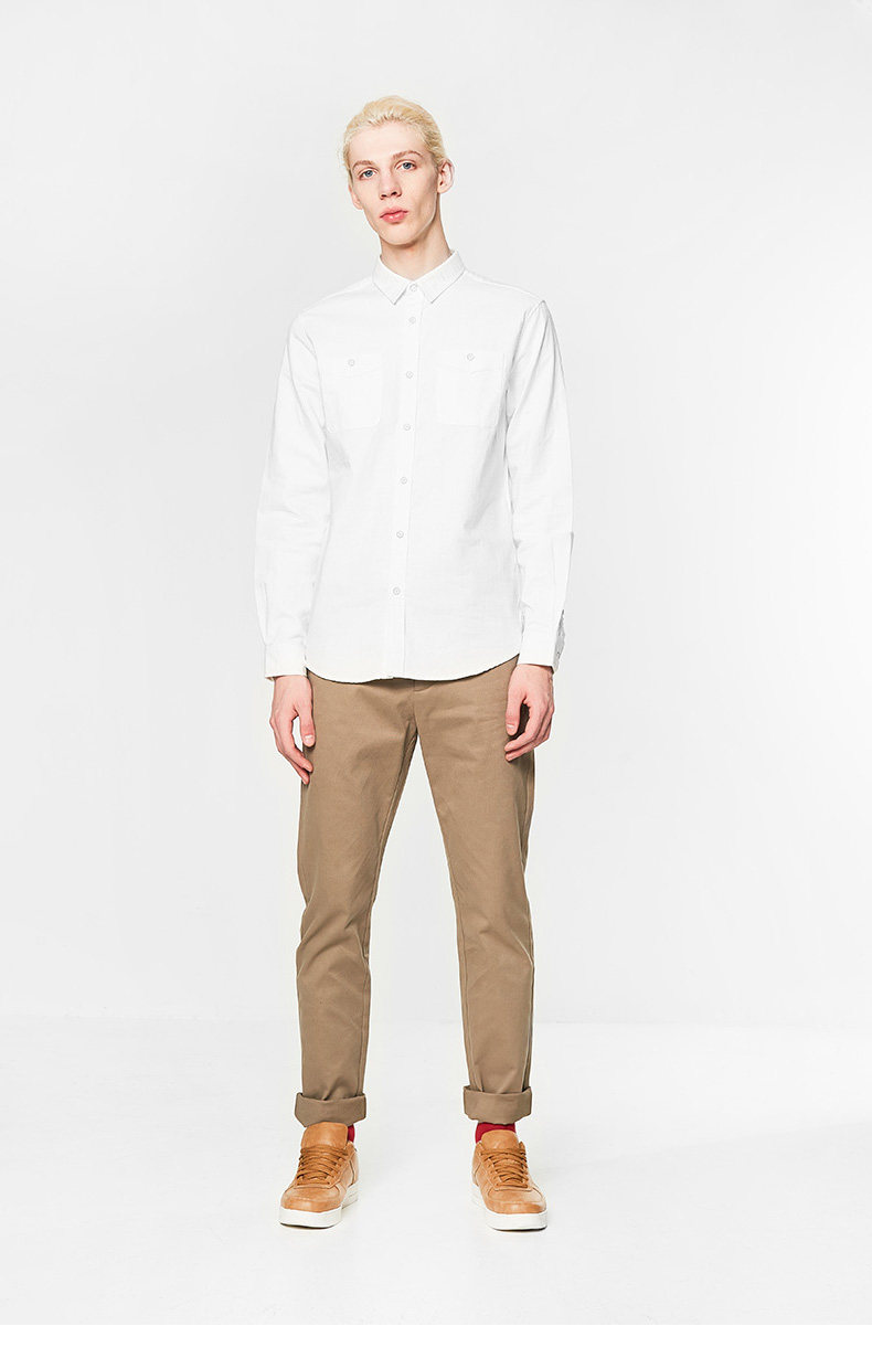 C & A thường xuyên kẻ sọc dài tay áo sơ mi nam 2018 đầu mùa xuân mới kết cấu jacquard áo CA200200774