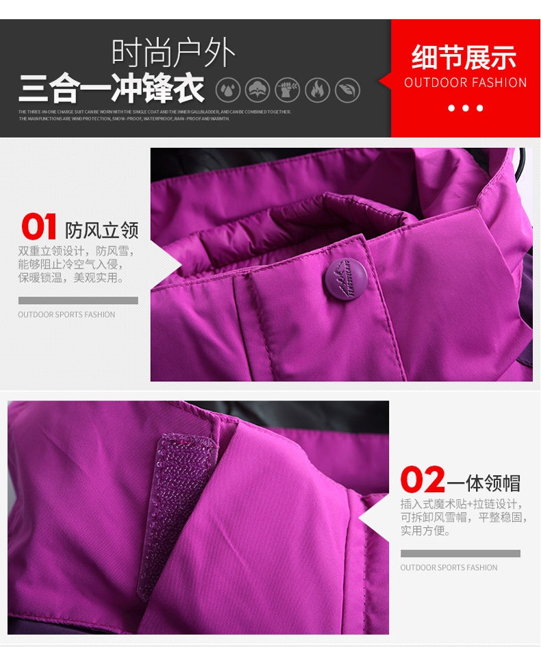 Áo Khoác ngoài trời Nam Giới và phụ nữ Ba-trong-một xuống hai mảnh có thể tháo rời cộng với nhung dày ấm kích thước lớn đi bộ đường dài quần áo Quần áo ngoài trời