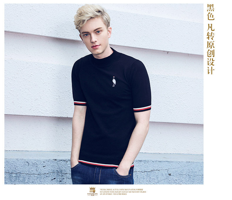 Nơi để biến 2018 mùa xuân đáy áo nửa cao cổ áo len nam ngắn tay áo len đứng cổ áo xu hướng cá tính áo len
