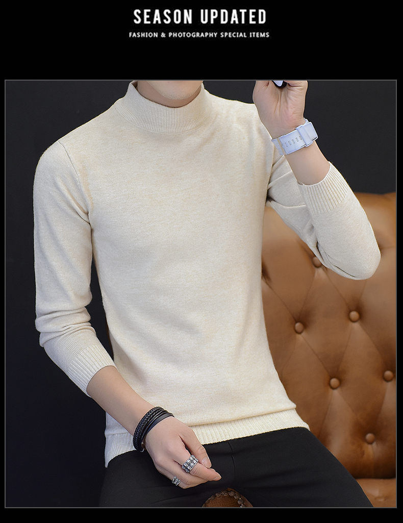 Người đàn ông mới của nửa cao cổ áo màu đen và trắng màu rắn mùa thu và mùa đông đáy áo Slim ấm áo len áo len thủy triều nam quần áo