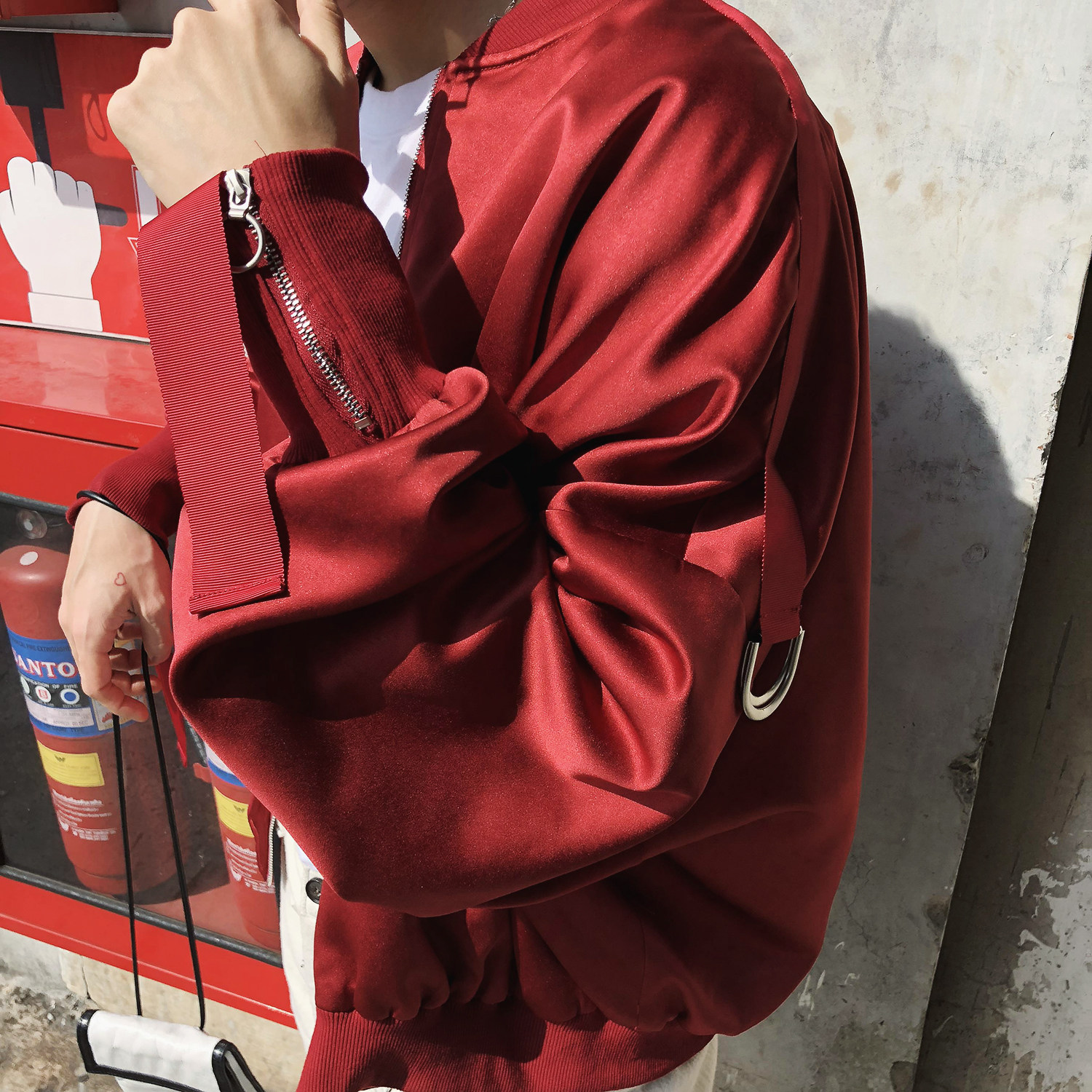 Net màu đỏ gió cao đường phố alpha đỏ bat tay áo ngắn băng vòng dây kéo áo khoác bay bóng chày áo khoác