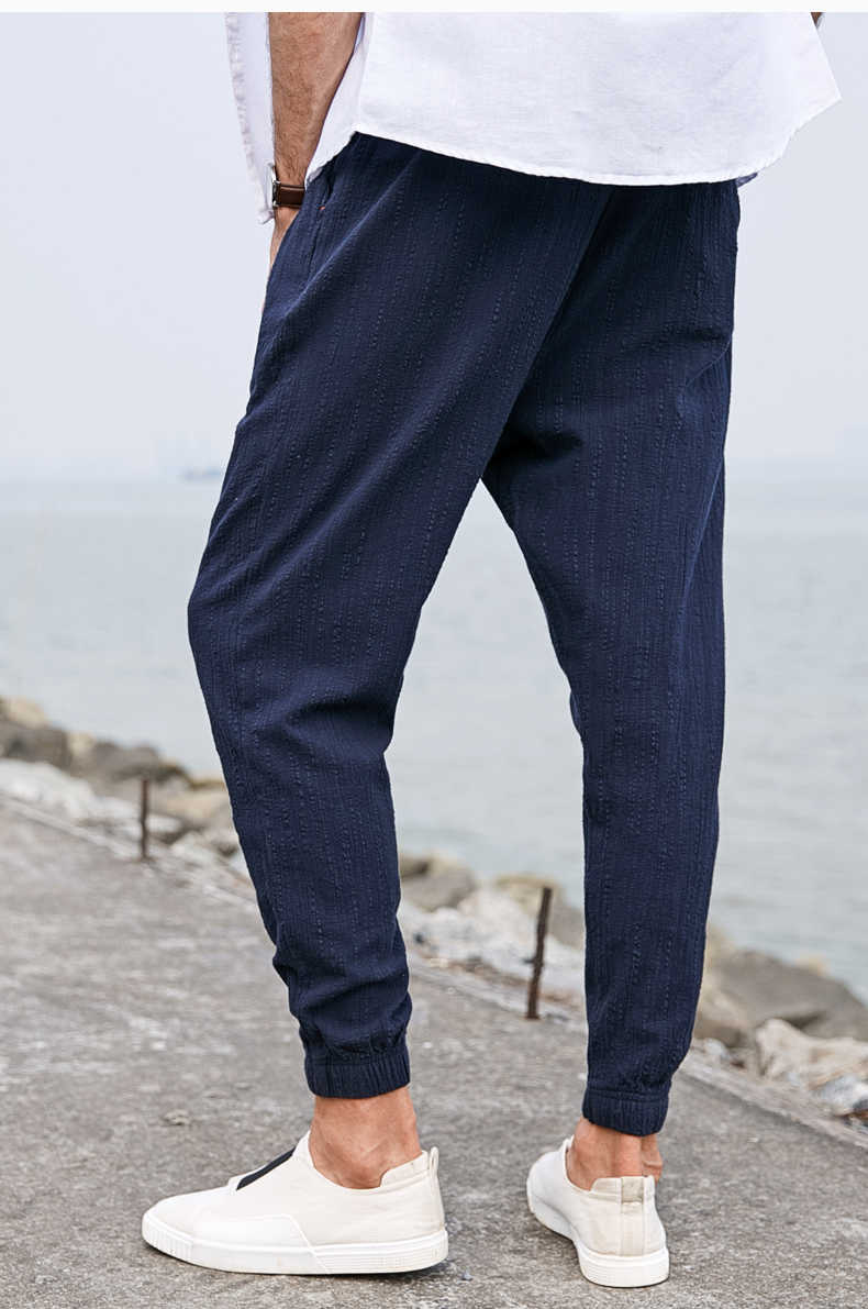 Mùa xuân và mùa hè phần mỏng quần linen nam lỏng chùm chân cotton quần nam triều chân rộng chân quần harem củ cải quần