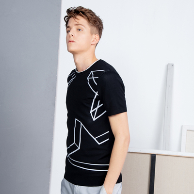 Carbine cơ thể của nam giới vòng cổ ngắn tay áo len giản dị stretch dòng quần áo 2018 mùa xuân và mùa hè mới thanh niên T-Shirt B