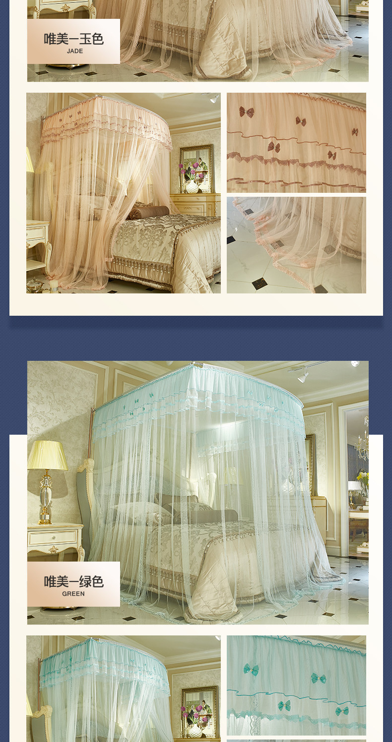 Violet 2018 mới hình chữ U có thể thu vào lưới muỗi 1.8 m giường đôi hộ gia đình 1.5 mã hóa dày 2 m 2.2 Lưới chống muỗi