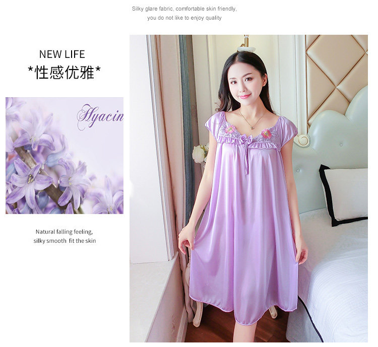 Đồ ngủ của phụ nữ ngắn tay kích thước lớn băng dài lụa mùa hè chất béo MM nightdress lỏng sexy mang thai phụ nữ mang thai nightdress sling