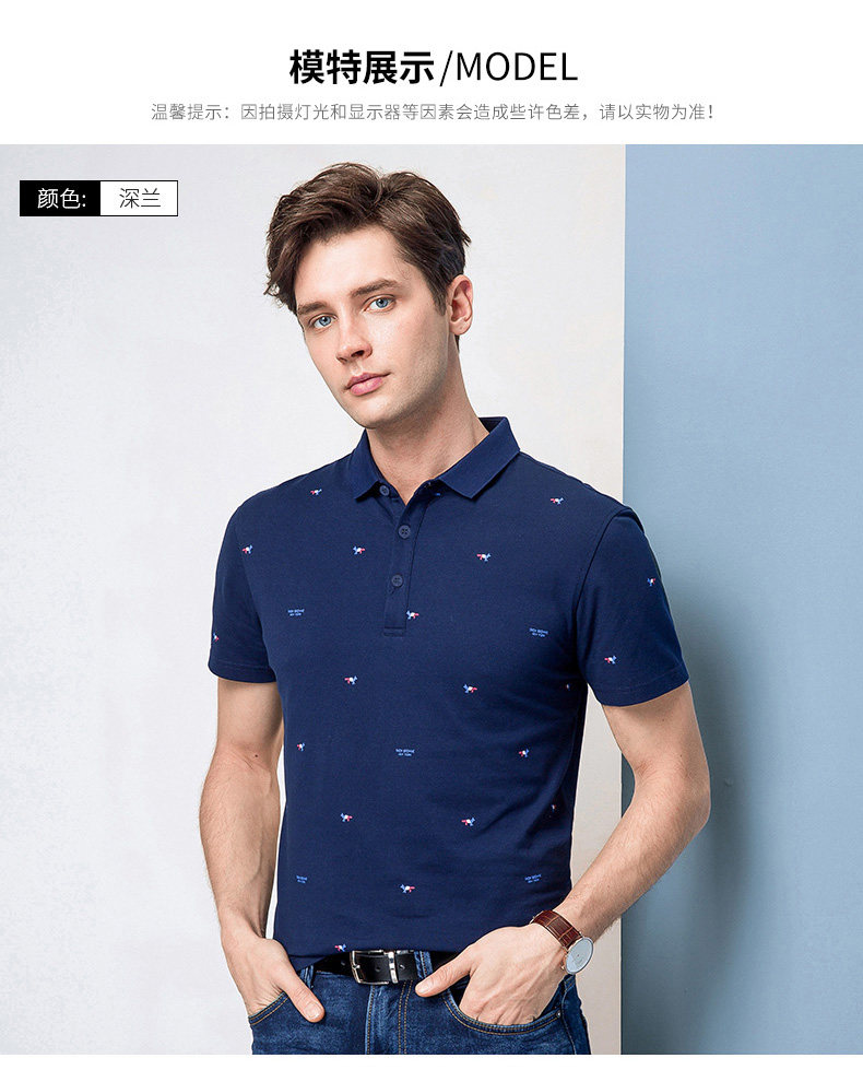 Romon Luo Meng trẻ và trung niên mỏng in POLO áo 2018 mùa hè mới ve áo giản dị ngắn tay T-Shirt nam