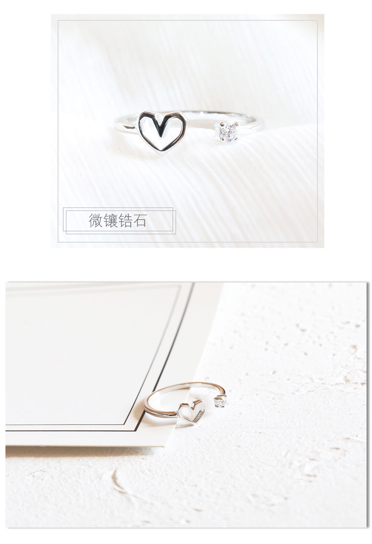 Bling tay làm [trái tim vĩnh cửu] mở vòng vòng chỉ số nữ ngón tay có thể được điều chỉnh 925 sterling bạc sinh viên Nhật Bản và Hàn Quốc Nhẫn
