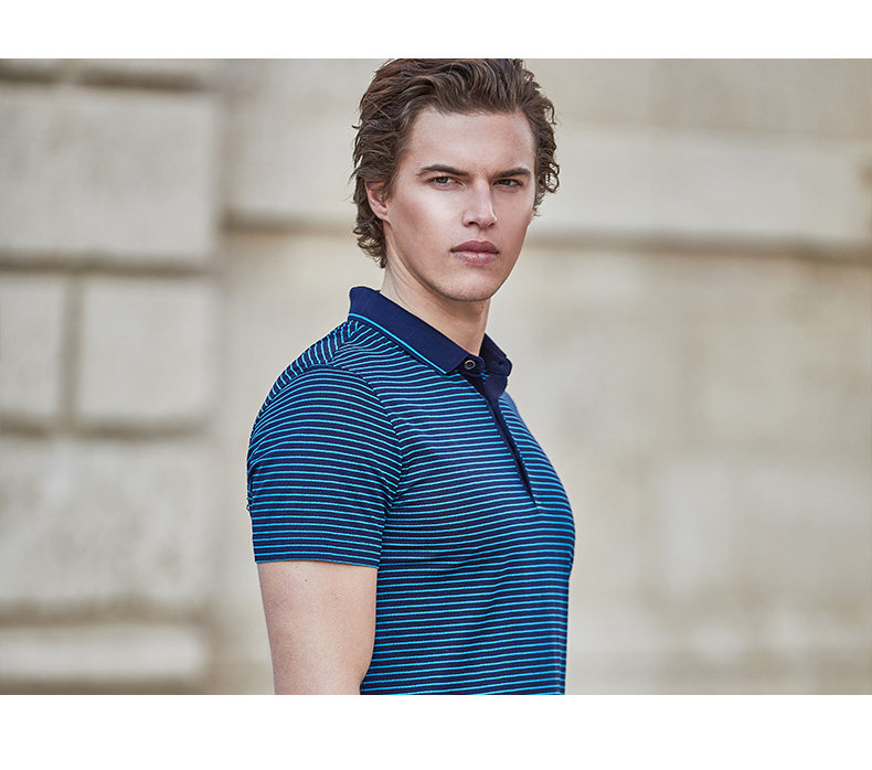 Jiu Mu Wang nam ngắn tay T-Shirt thời trang giản dị mercerized cotton kinh doanh ve áo Slim xu hướng sọc polo áo sơ mi nam