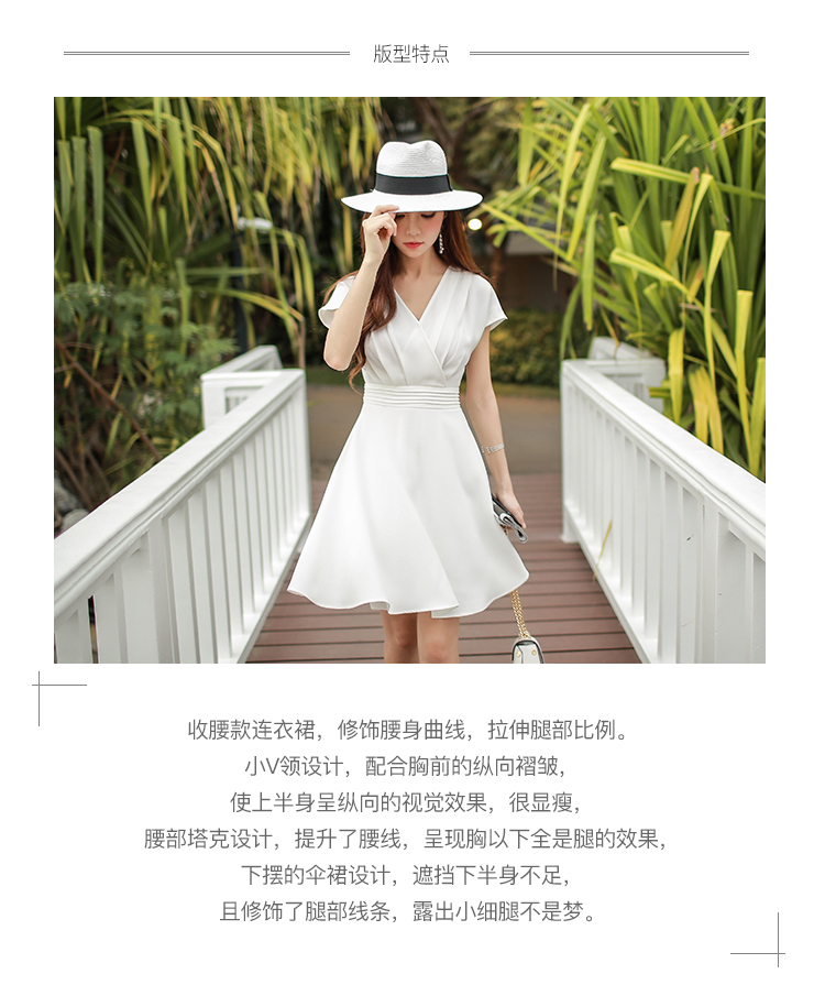 Con búp bê lớn màu hồng v cổ áo mùa hè phần 2018 tính khí mới pleated eo bat ngắn tay đầm