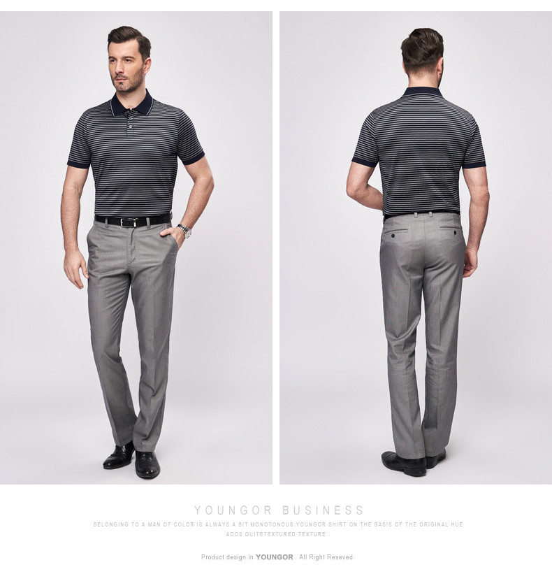 Youngor Youngor mùa hè nam áo sơ mi kinh doanh bình thường polo sọc nam ngắn tay T-Shirt nam 4896