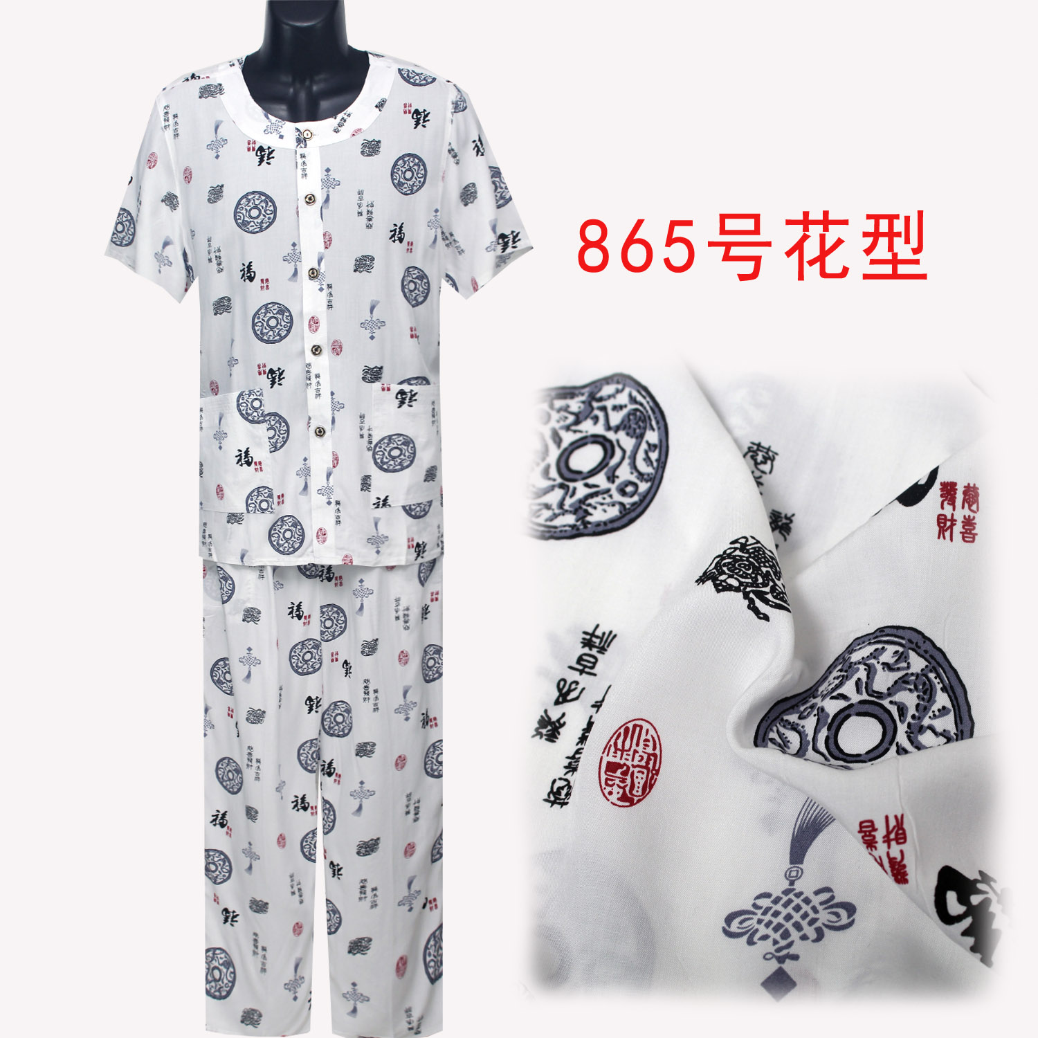 Người đàn ông trung niên của bông lụa phù hợp với mùa hè ông nội nhà thường dịch vụ đồ ngủ ngắn tay cardigan bông lụa phù hợp với