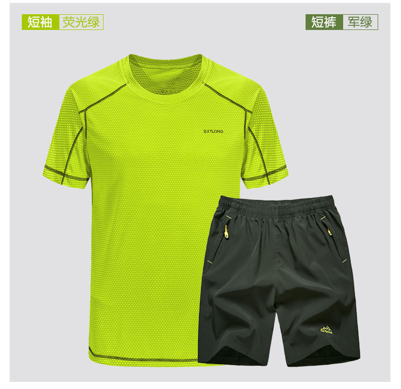 Nhanh chóng làm khô phù hợp với nam mùa hè mỏng chạy thể dục quần áo ngắn tay năm- điểm quần short thể thao t- áo sơ mi mùa hè quần áo ngoài trời Quần áo ngoài trời