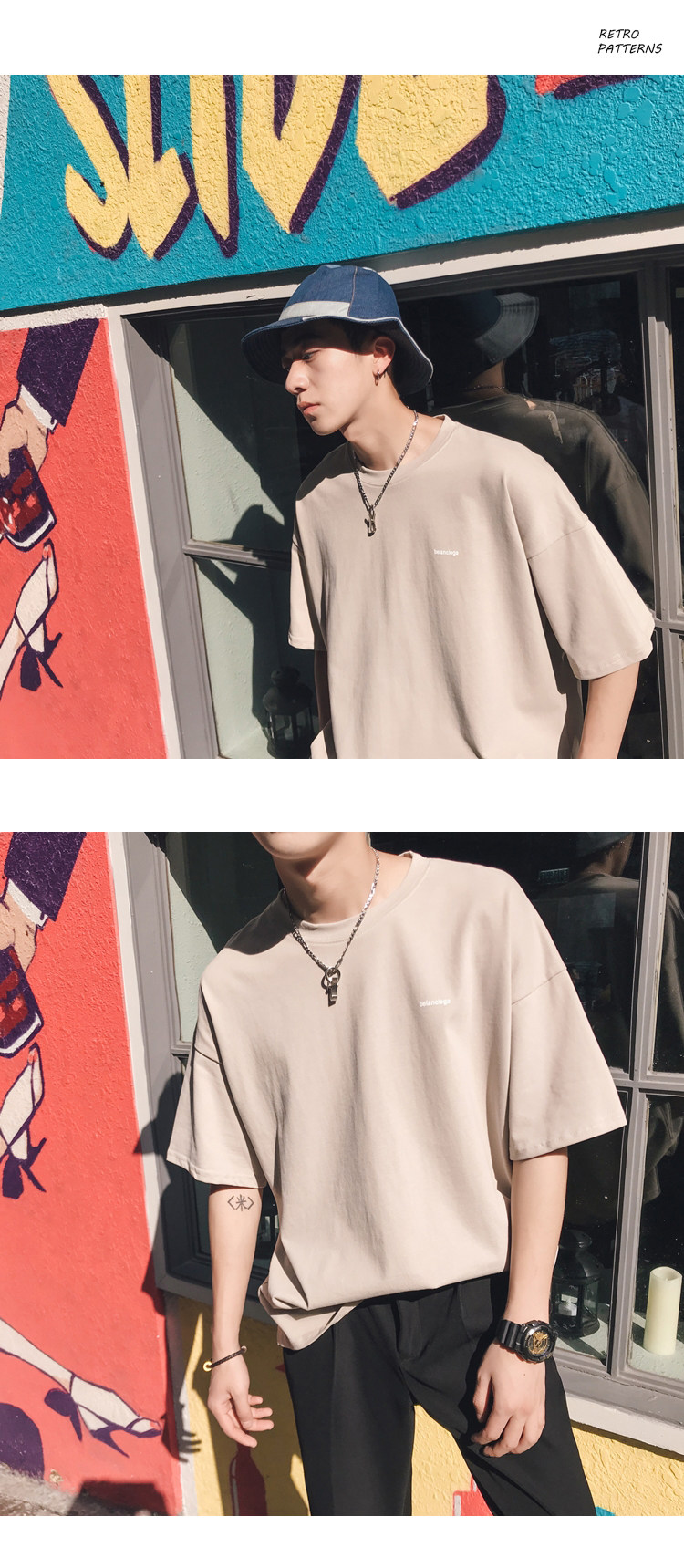 Hồng Kông văn học nam sinh viên xu hướng hoang dã lỏng ngắn tay T-Shirt mùa hè Hàn Quốc phiên bản hip-hop vòng cổ vài từ bi Áo khoác đôi