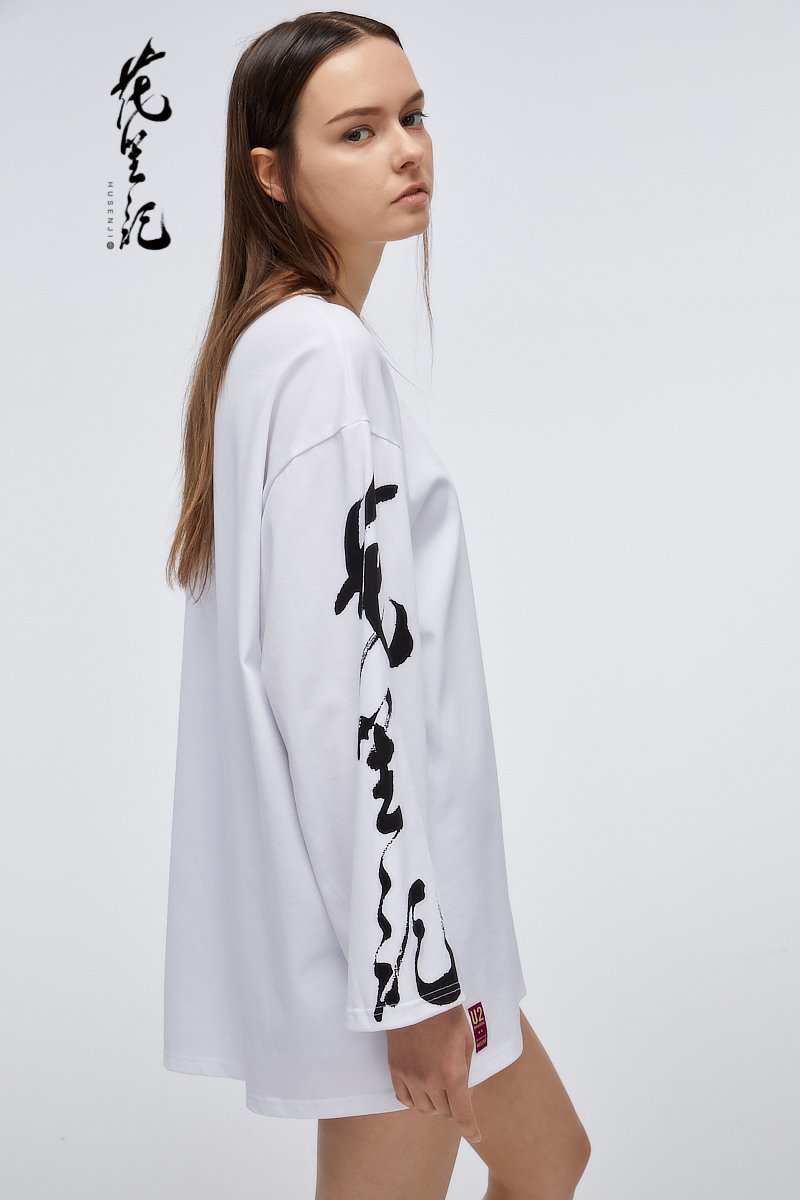 Hoa 笙 phong cách Trung Quốc ánh sáng thủy triều sang trọng in thương hiệu dài tay vòng cổ áo sơ mi nam màu đỏ và trắng loose couple hip hop đường phố khiêu vũ T-Shirt Áo phông dài