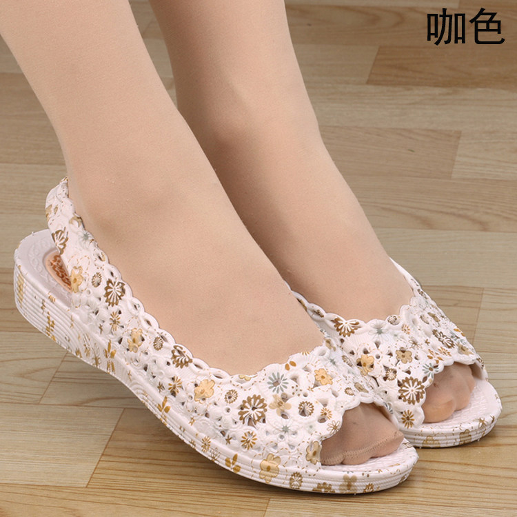 Hàn Quốc phiên bản của mùa hè mới của phụ nữ dép phẳng nhựa in giày bãi biển nông miệng rỗng mẹ giày không trượt lỗ giày Sandal
