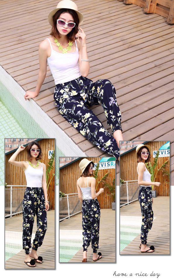 Thái Yoga Đèn Lồng Quần của Phụ Nữ Mùa Hè Lỏng Nhân Tạo Cotton Rộng Leg Cotton Lụa Chín Bãi Biển Quần Nhà Đồ Ngủ Quần tây