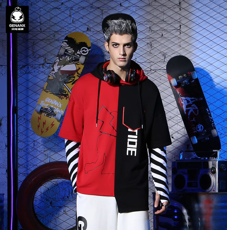 GENANX sét triều thương hiệu áo len màu sắc tương phản khâu không thường xuyên hem sọc tay áo 2018 mùa thu mới áo triều