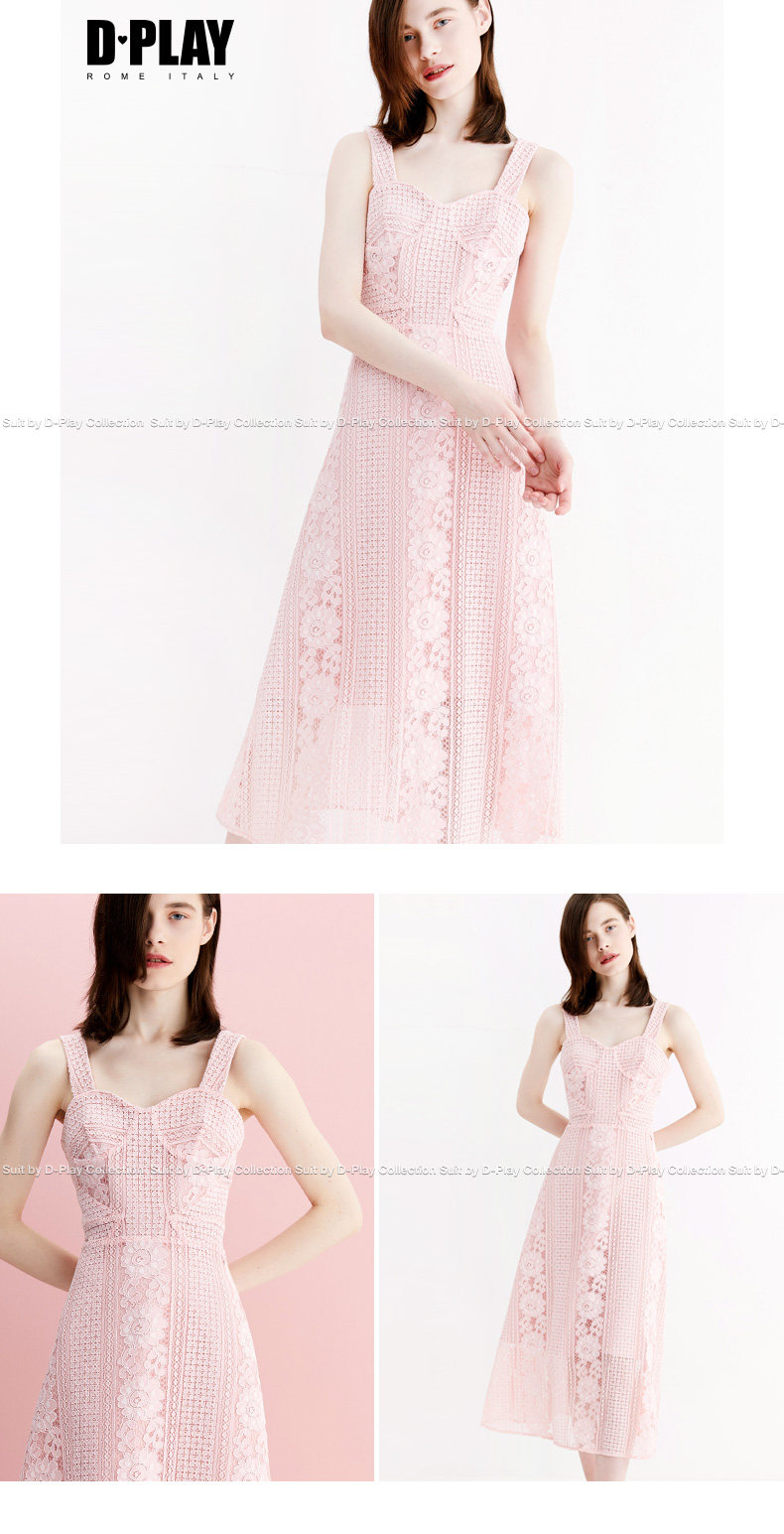 DPLAY2018 mùa hè mới Châu Âu và Mỹ màu hồng ren dây đeo đầm eo cao ăn mặc tay áo có thể tháo rời