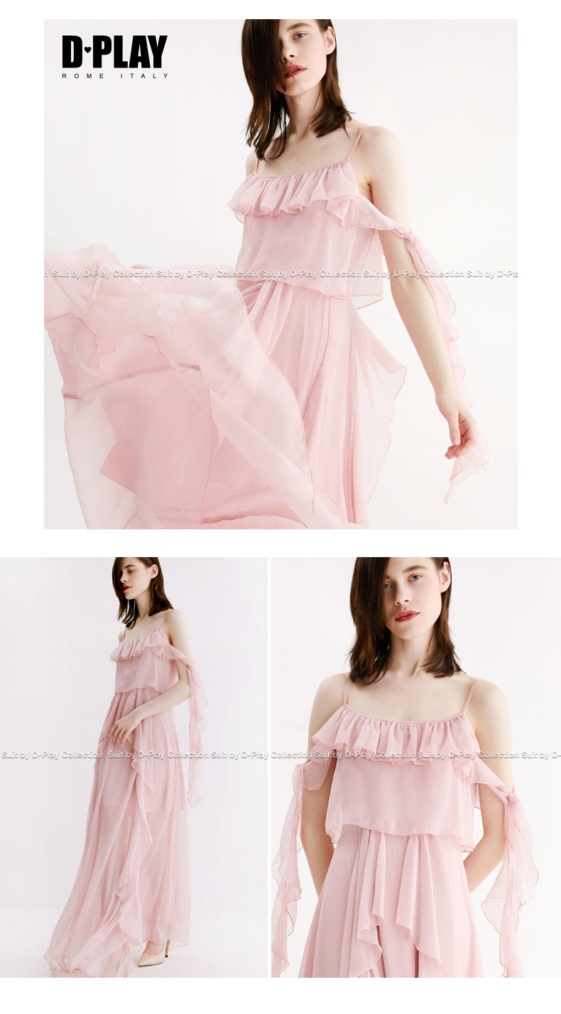 DPLAY Depala 2018 Mùa Hè Mới Hồng Sling Xù Arm Banded Voan Váy chic Dress Sản phẩm HOT