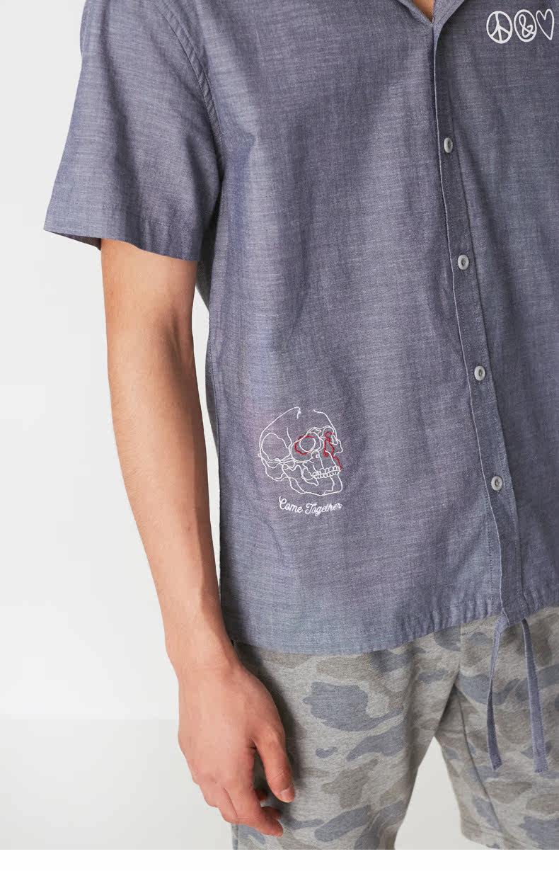 C & A chống chiến tranh thư in áo trùm đầu của nam giới bông 骷髅 thêu áo sơ mi ngắn tay CA200207254-1