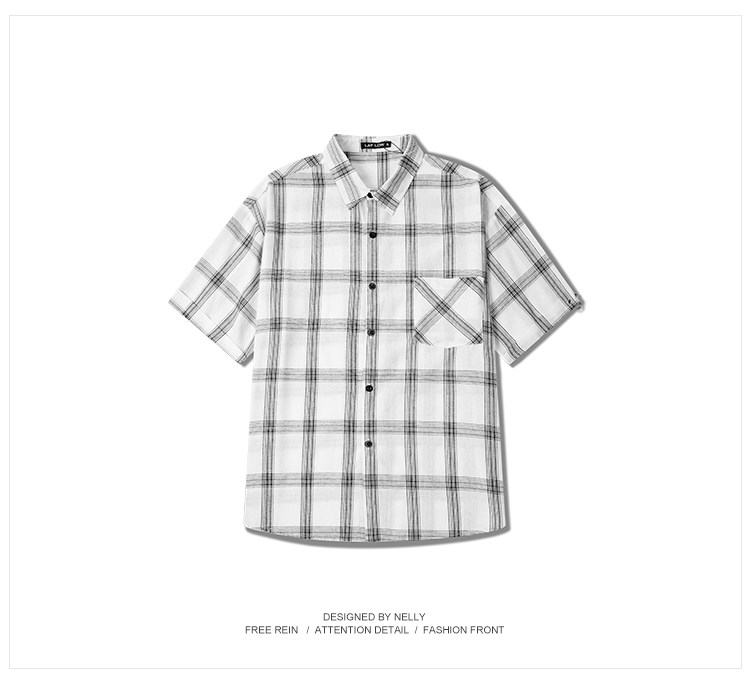 Hip-hop thời trang đường phố Nhật Bản INS với retro cổ điển nhỏ rô kẻ sọc áo sơ mi ngắn tay 18ss nam giới và phụ nữ mô hình