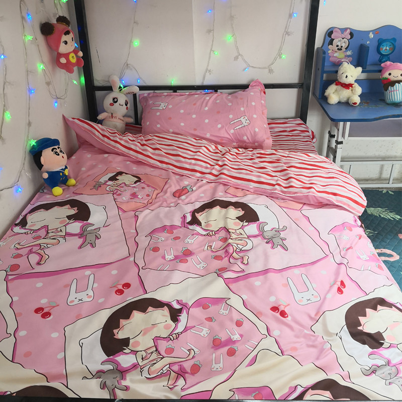 Phim hoạt hình ins cô gái giấc mơ ký túc xá sinh viên ba mảnh đặt 1.2 M m 1.5 hoặc 1.8x2 bộ đồ giường bốn mảnh Bộ đồ giường bốn mảnh