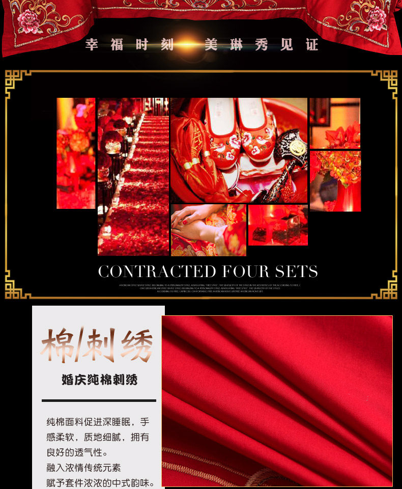 Đám cưới bộ bốn lớn màu đỏ bông thêu đám cưới giường bông thêu giường mới hôn nhân 1.8m tờ Bộ đồ giường bốn mảnh