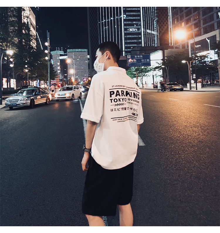 2018 mùa hè mới trở lại thư in polo áo sơ mi nam thanh niên cổng gió lỏng ve áo ngắn tay áo thủy triều nửa tay áo