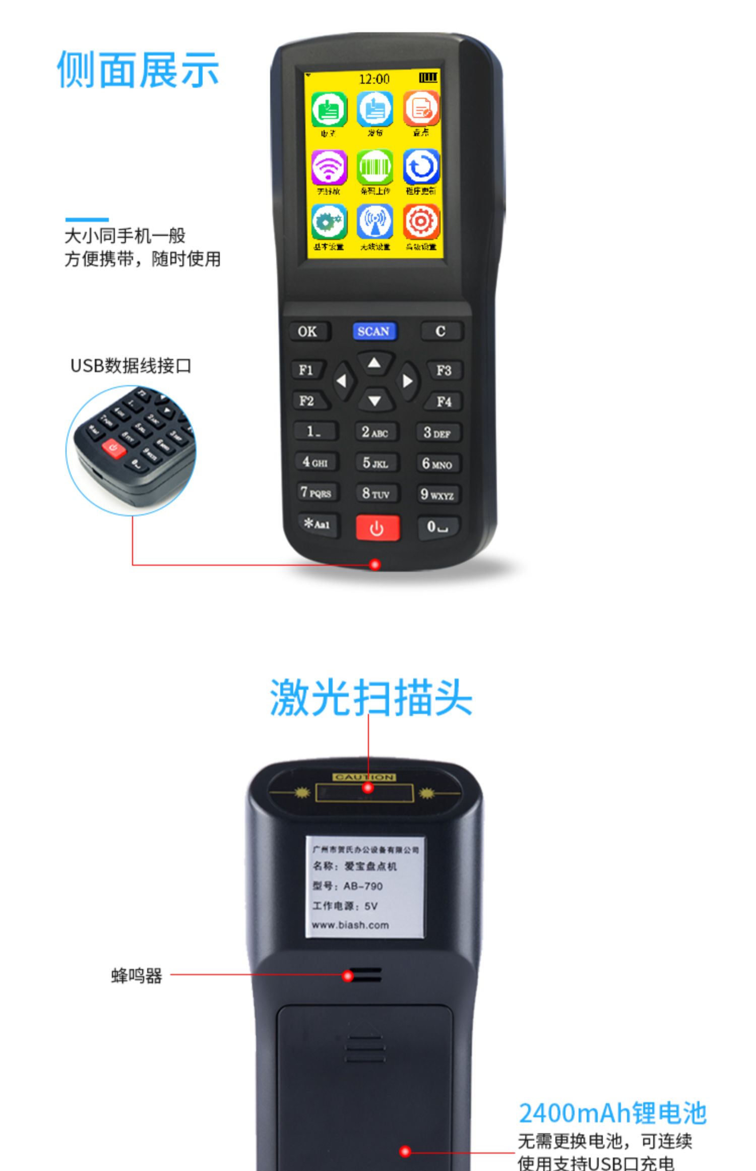 Aibo AB-790 máy kiểm kê không dây máy quét mã vạch thu thập dữ liệu pda thiết bị đầu cuối cầm tay quét mã hóa đơn sách quét mã kho kho kho siêu thị kho hậu cần súng - Thiết bị mua / quét mã vạch Thiết bị mua / quét mã vạch