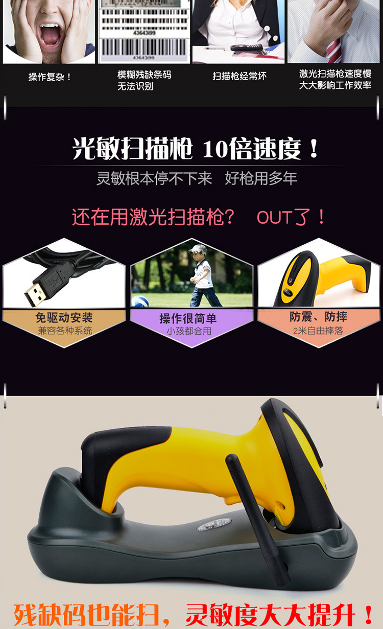 Có dây không dây mã quét súng tốc độ đơn súng laser quét mã vạch ánh sáng đỏ mã vạch một chiều - Thiết bị mua / quét mã vạch Thiết bị mua / quét mã vạch