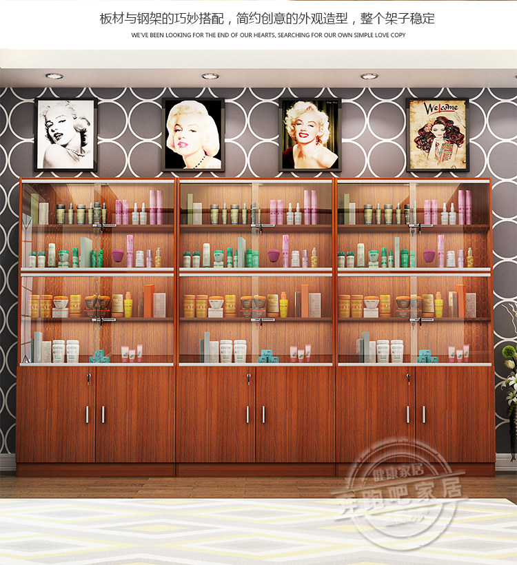 Cửa kính có khóa tủ trưng bày mỹ phẩm thẩm mỹ viện thẩm mỹ viện sản phẩm chăm sóc da kệ nhiều lớp cửa hàng nail