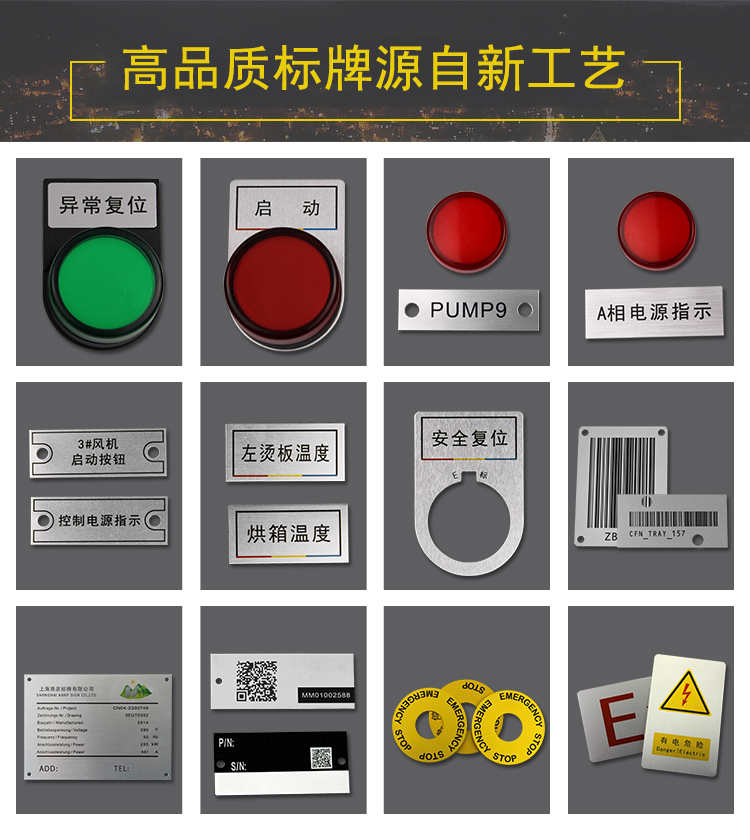 Dấu hiệu dừng khẩn cấp máy móc và thiết bị bảng tên tùy chỉnh hợp kim nhôm nút điện bảng hiệu nút ánh sáng tùy chỉnh - Thiết bị đóng gói / Dấu hiệu & Thiết bị Thiết bị đóng gói / Dấu hiệu & Thiết bị