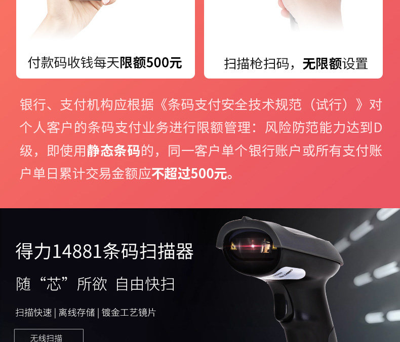 Deli 14881 quét mã súng không dây nhanh để lấy mã vạch quét siêu thị bộ sưu tập một chiều quét laser mã kho kho tiền máy quét mã vạch - Thiết bị mua / quét mã vạch Thiết bị mua / quét mã vạch