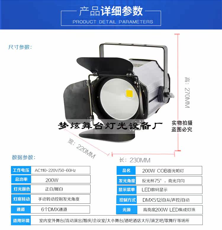 đèn nháy led hình ngôi sao LED200W mặt ánh sáng COB Par ánh sáng sân khấu ánh sáng thiết bị biểu diễn đám cưới hệ thống đèn chiếu sáng sân khấu Thiết bị sân khấu