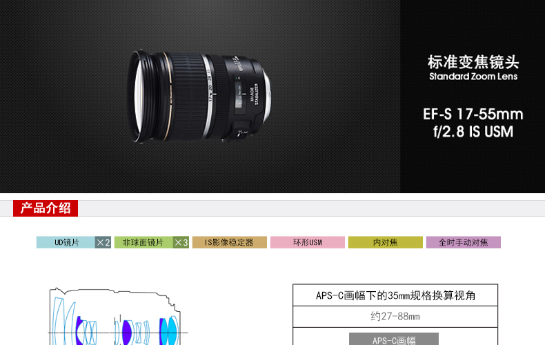 [Dòng quốc gia xác thực mới] Ống kính zoom tiêu chuẩn Canon Canon EF-S 17-55mm f 2.8 ISM không đổi khẩu độ lớn ống kính máy ảnh DSLR nửa khung hình APS Máy ảnh SLR