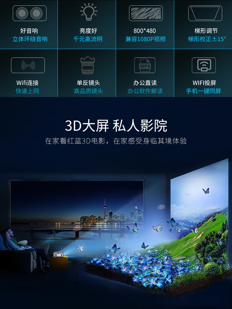 轰天 炮 gp18 máy chiếu gia đình HD không dây wifi nhỏ thu nhỏ cầm tay led thông minh 3d rạp hát tại nhà máy chiếu 1080P - Máy chiếu Máy chiếu