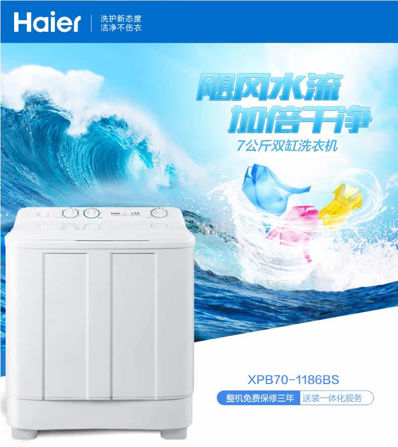 Haier Haier XPB70-1186BS máy giặt bán tự động hộ gia đình đôi xi lanh đôi thùng đập 7 kg khô máy giặt diệt khuẩn