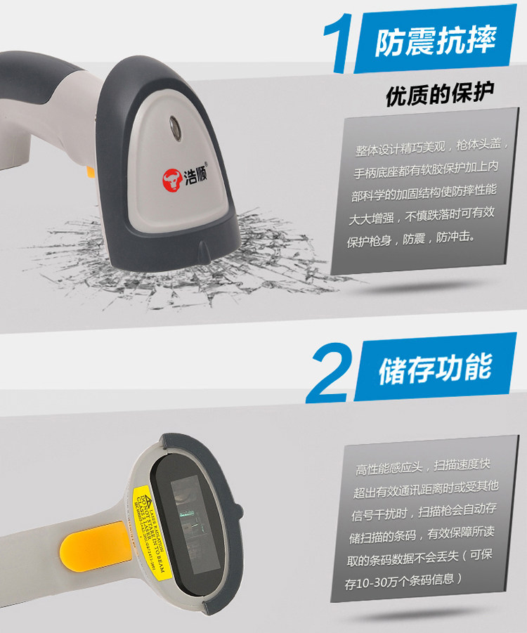 Haoshun S3133 + máy quét không dây mã vạch không dây quét mã vạch súng chống siêu thị chuyển phát nhanh - Thiết bị mua / quét mã vạch Thiết bị mua / quét mã vạch