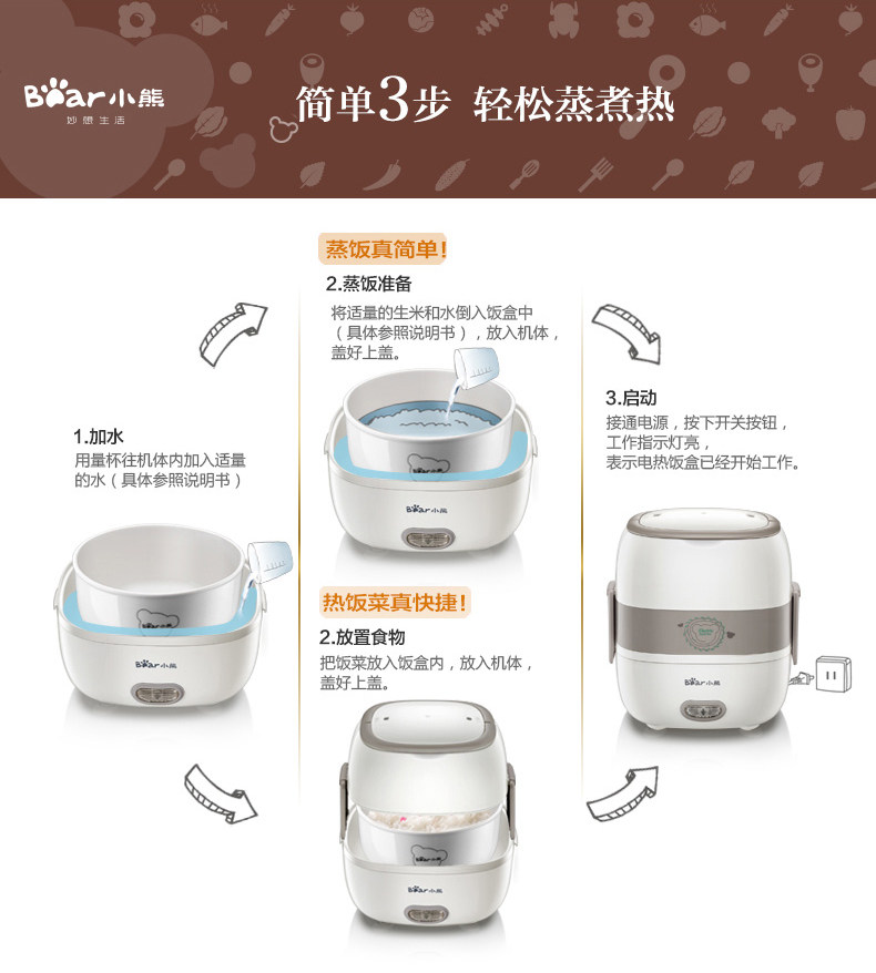 hộp cơm điện lock&lock ejr216 Gấu hộp cơm trưa điện DFH-S2516 nấu cơm trưa mini nồi cơm điện nóng gấp đôi hộp cơm điện hộp hâm cơm Hộp cơm điện sưởi ấm