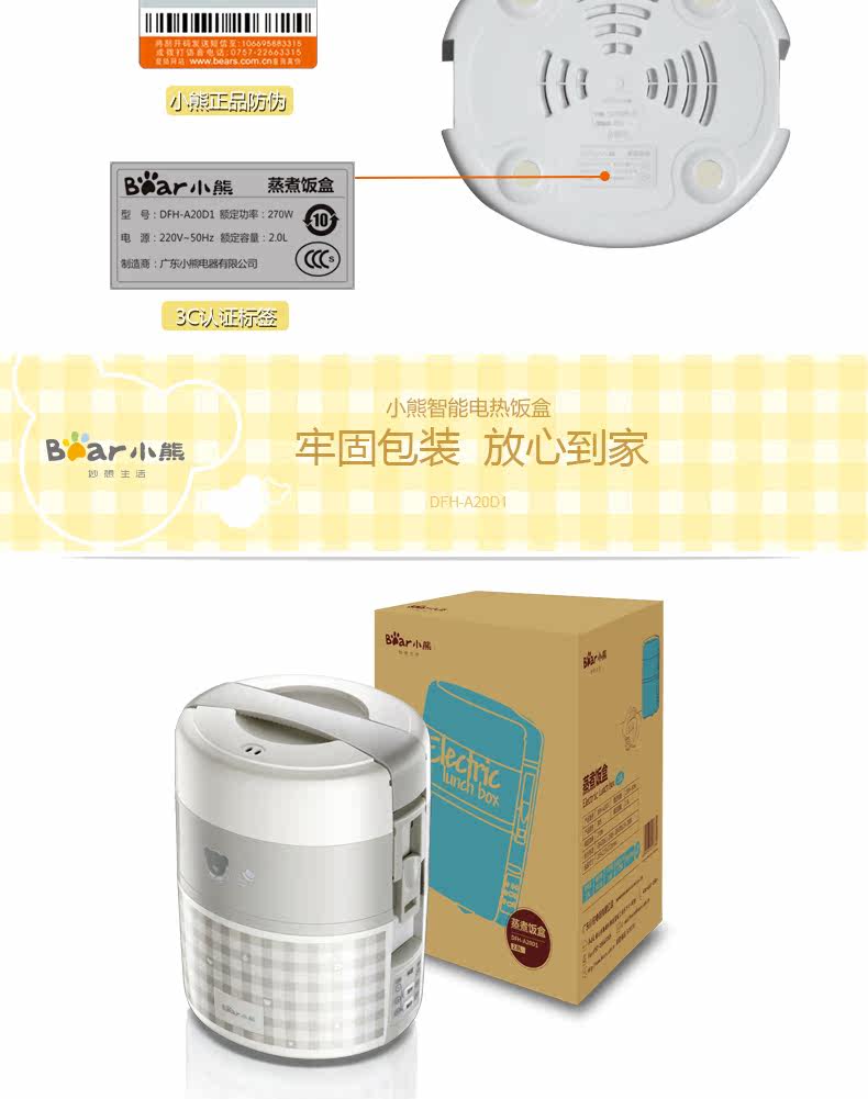 hộp cơm điện lock&lock Gấu điện hộp cơm trưa lót gốm DFH-A20D1 hộp cơm nóng cắm trong hộp cơm trưa cách nhiệt nồi cơm điện mini hộp cơm hâm nóng chefman Hộp cơm điện sưởi ấm