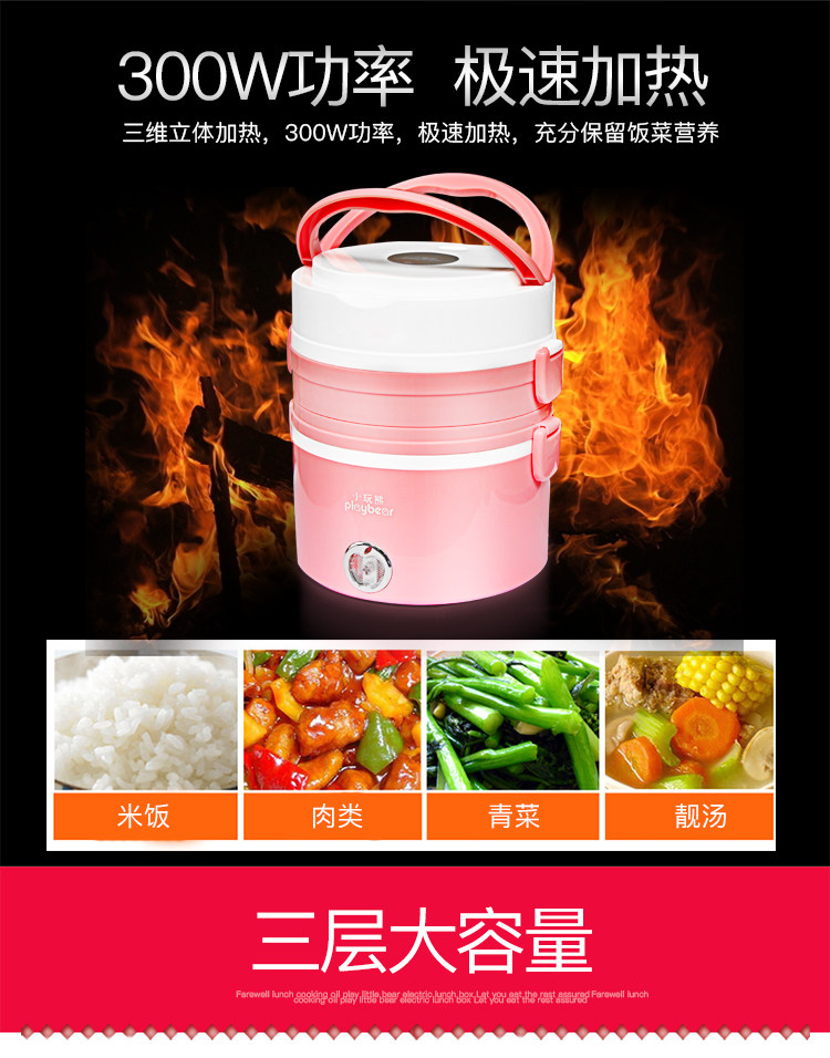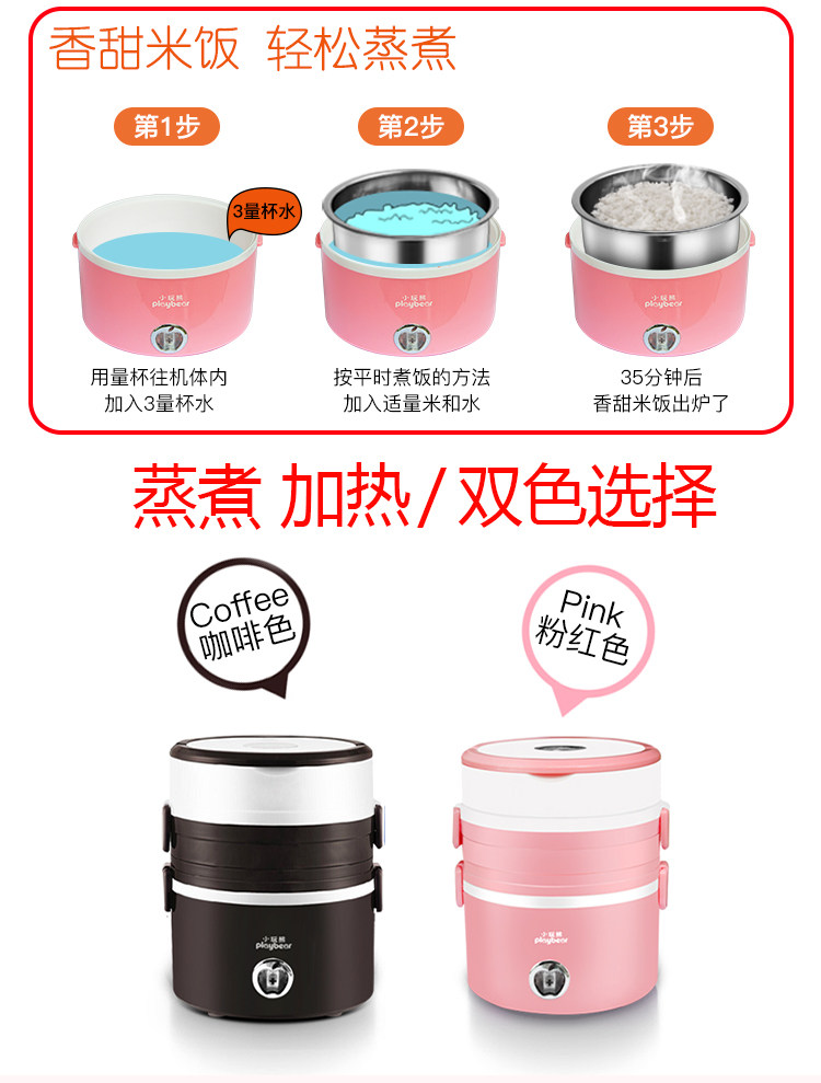 hộp com lock and lock cắm điện Little Raccoon Mini nấu ăn cơm trưa điện đôi cơm nóng có thể được cắm trong cách điện ba lớp đa chức năng tự động hộp cơm cắm điện giữ nhiệt komasu Hộp cơm điện sưởi ấm