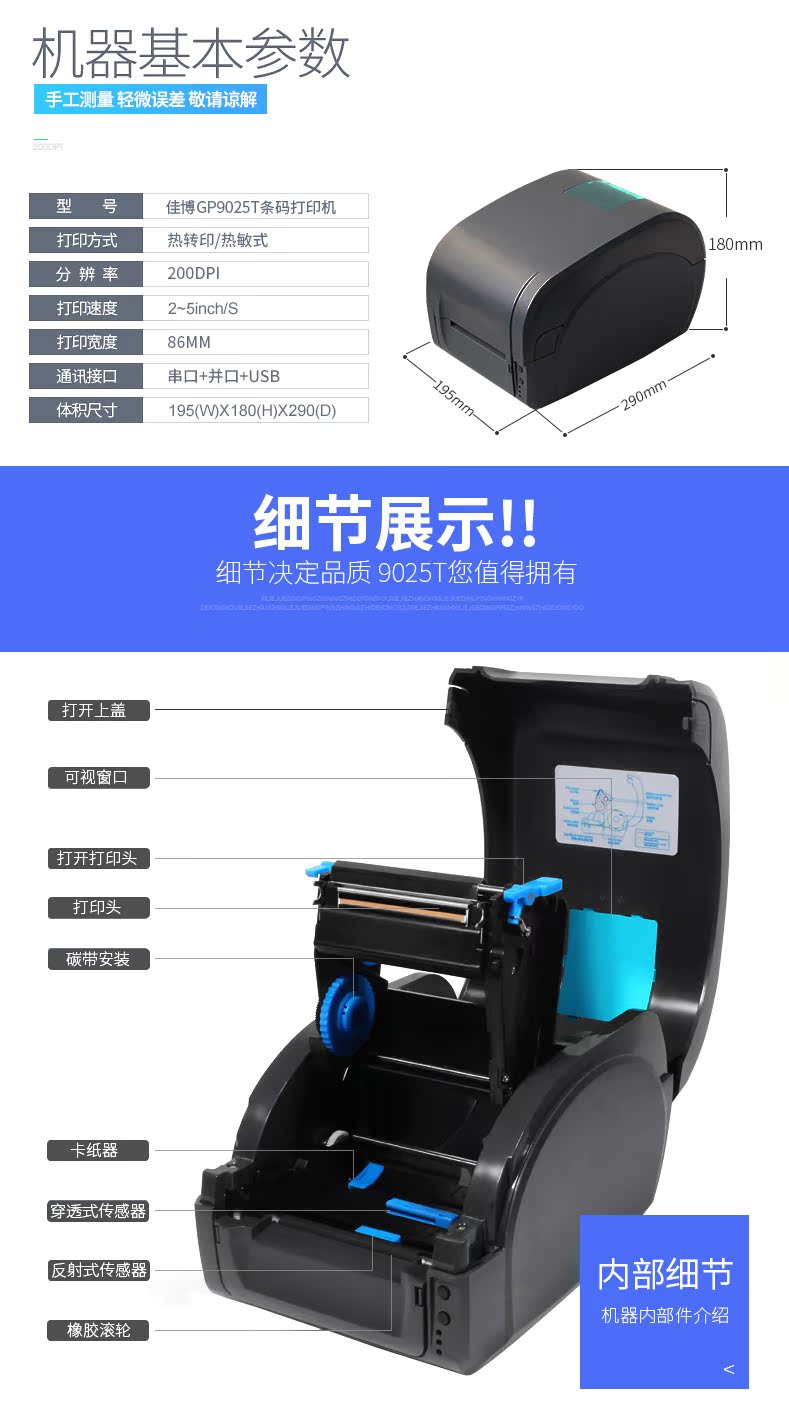Jiabo GP9025T Máy in nhãn ruy băng Giá hàng hóa Thẻ trang sức Nhãn châu Á Giấy tráng bạc Nhãn dán Giá dán Kho cố định Tài sản Máy in chuyển mã nhiệt Bluetooth - Thiết bị mua / quét mã vạch Thiết bị mua / quét mã vạch