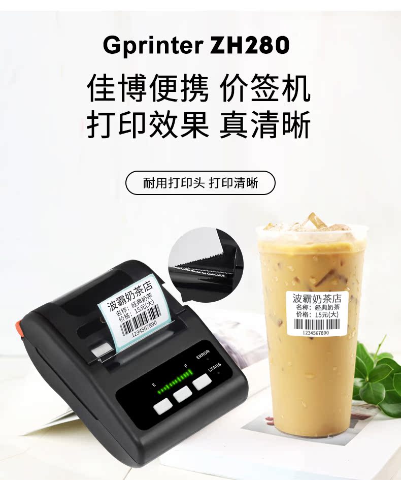 Jiabo ZH280A nhãn di động ghi chú cầm tay Bluetooth nhiệt QR mã vạch máy in phục vụ trà sữa quần áo dán giấy đói những gì nhóm Hoa Kỳ mang đi máy nhãn giá hàng hóa - Thiết bị mua / quét mã vạch Thiết bị mua / quét mã vạch