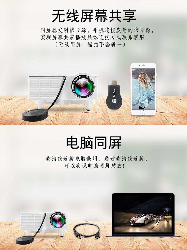 Le Jiada YG270 điện thoại di động gia đình có màn hình máy chiếu micro cầm tay led máy chiếu HD nhỏ rạp hát tại nhà không dây wifi1080 ký túc xá rạp hát tại nhà Android không có TV màn hình - Máy chiếu Máy chiếu