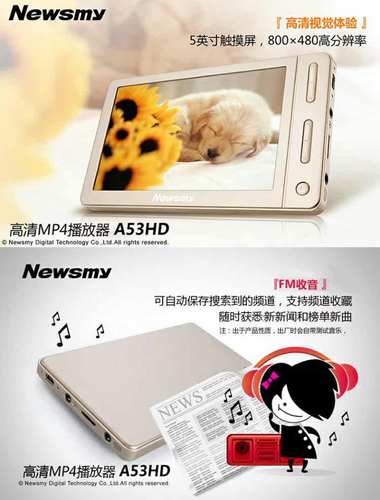 Màn hình cảm ứng máy nghe nhạc Newman MP4MP5 HD video mini Walkman màn hình 5 inch phát hành bên ngoài MP3 Máy nghe nhạc mp3