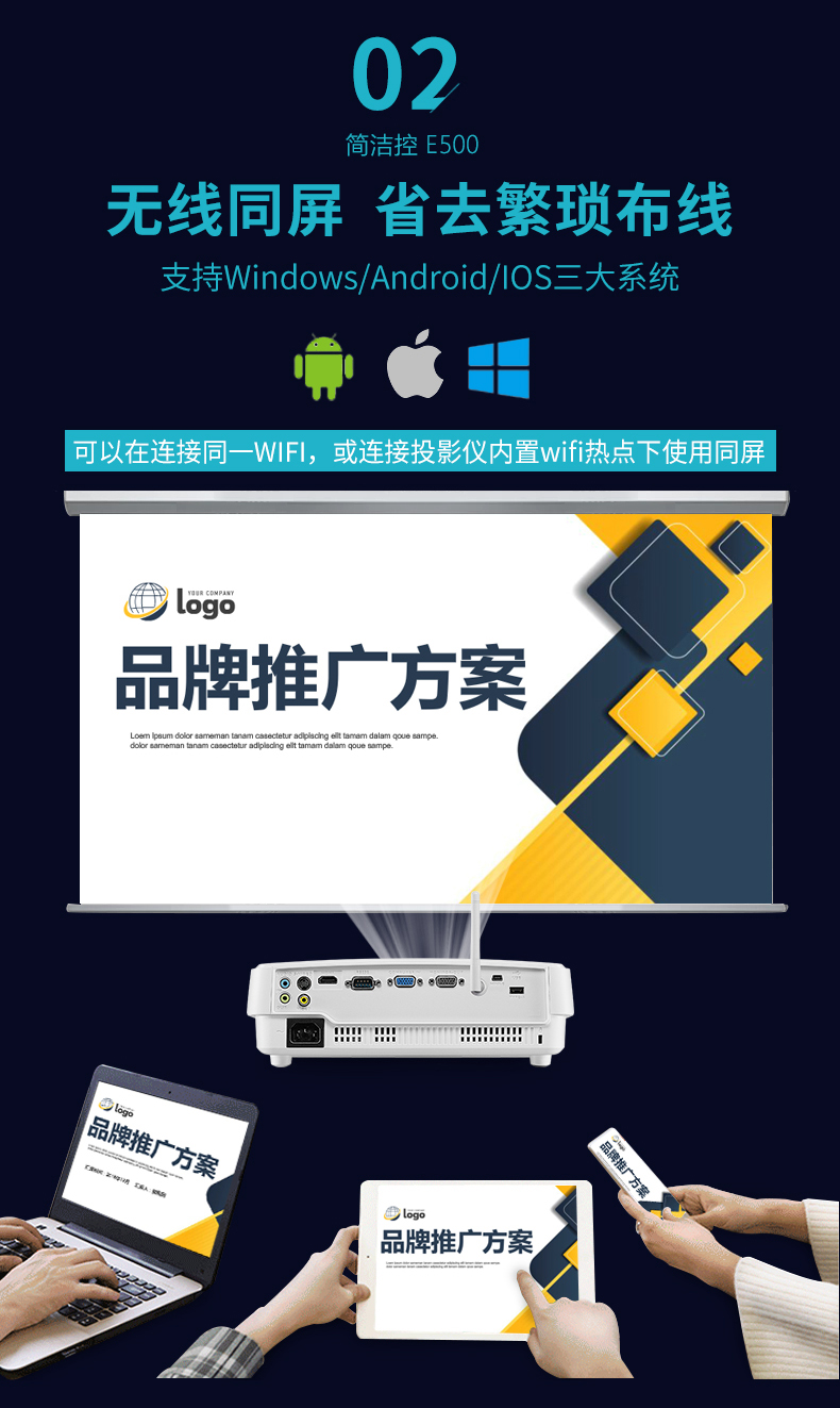 Máy chiếu BenQ BenQ E500 văn phòng kinh doanh thông minh hội thảo đào tạo tại nhà rạp hát 3D không có màn hình TV 1080P không dây wifi điện thoại di động Máy chiếu