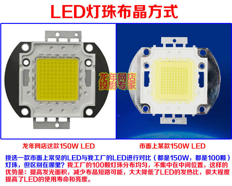 Máy chiếu trong nước phổ nguồn LED phụ kiện máy chiếu DIY phụ kiện độ sáng cao HD Bóng đèn LED 150W Phụ kiện máy chiếu