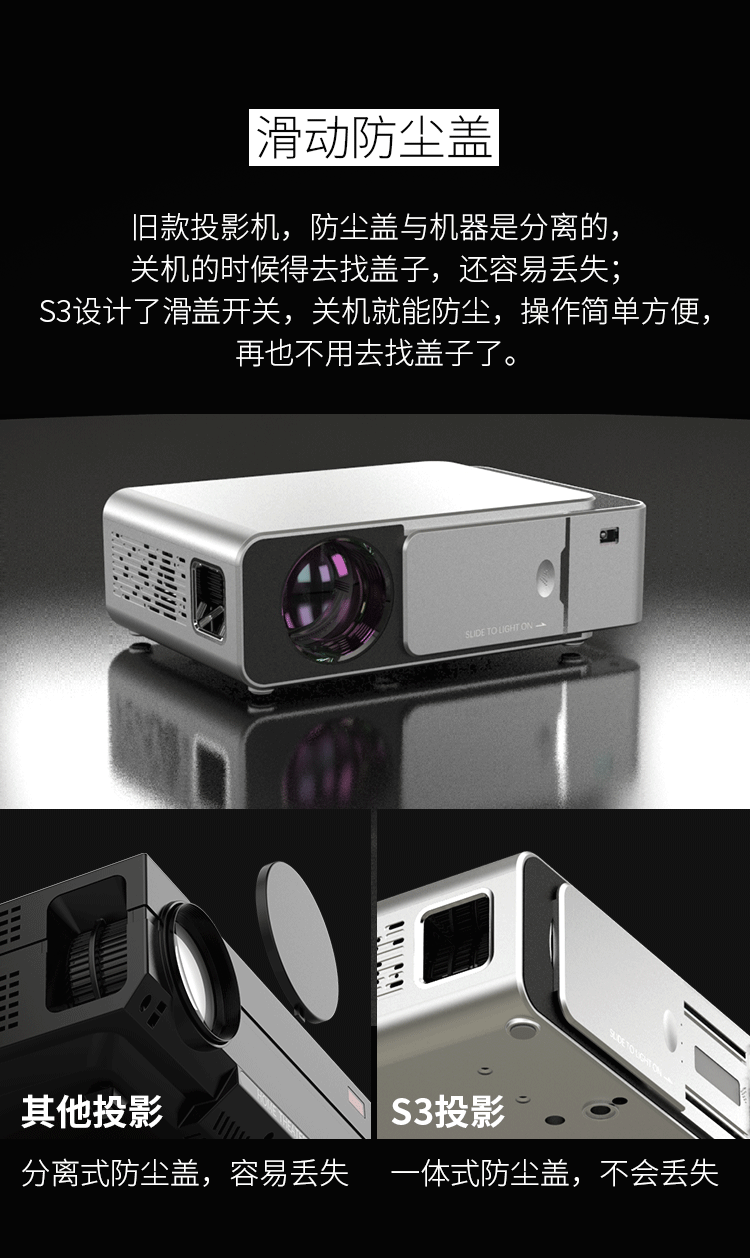 Máy đo ánh sáng S3 micro điện thoại di động máy chiếu gia đình không dây máy chiếu thông minh HD 1080p rạp hát tại nhà nhỏ di động văn phòng / phòng ngủ ký túc xá không có màn hình TV 2018 mới Máy chiếu
