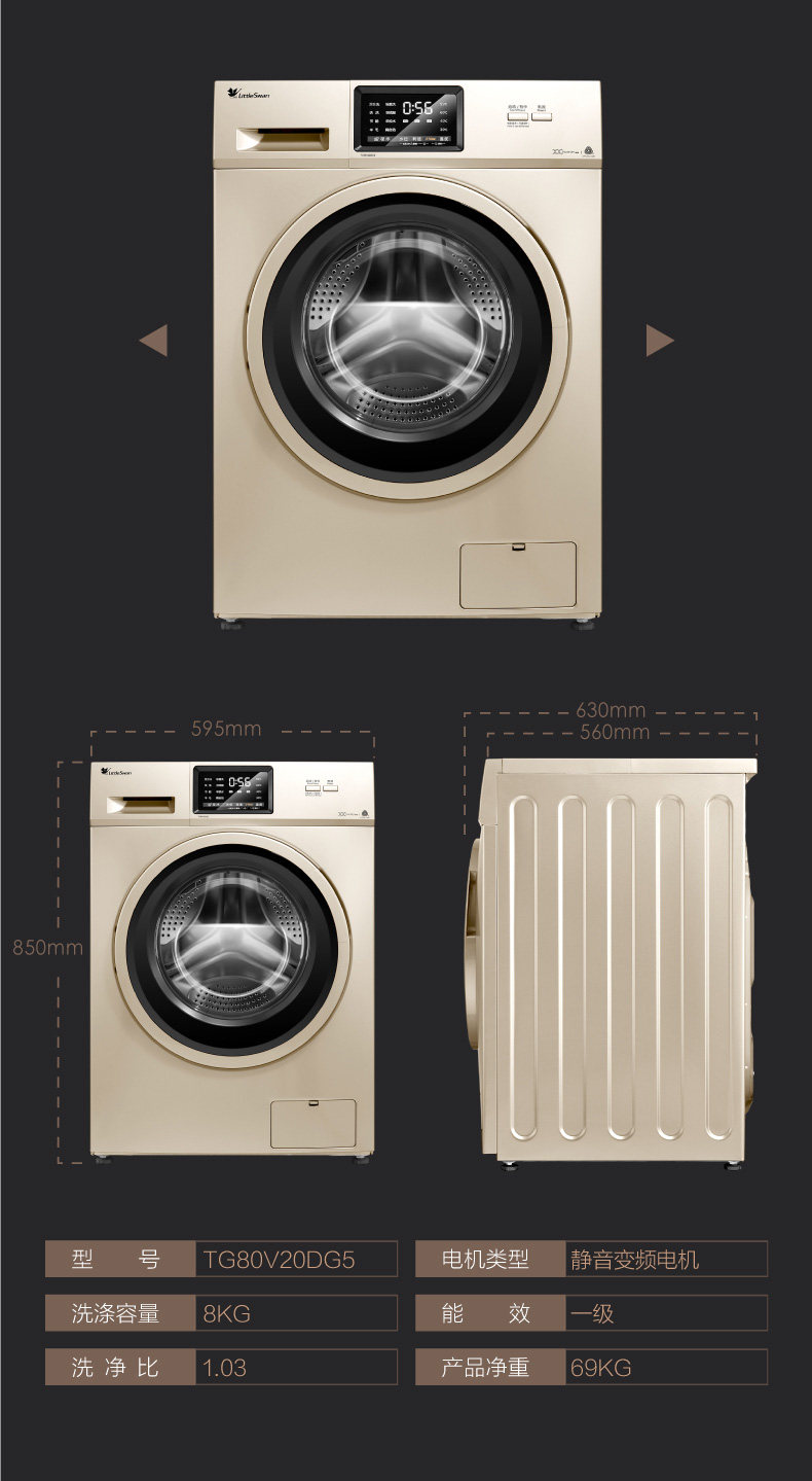 máy giặt panasonic 10kg Little Swan 8 kg KG tự động chuyển đổi tần số câm trống thông minh tiết kiệm năng lượng máy giặt gia đình TG80V20DG5 máy giặt có sấy May giặt