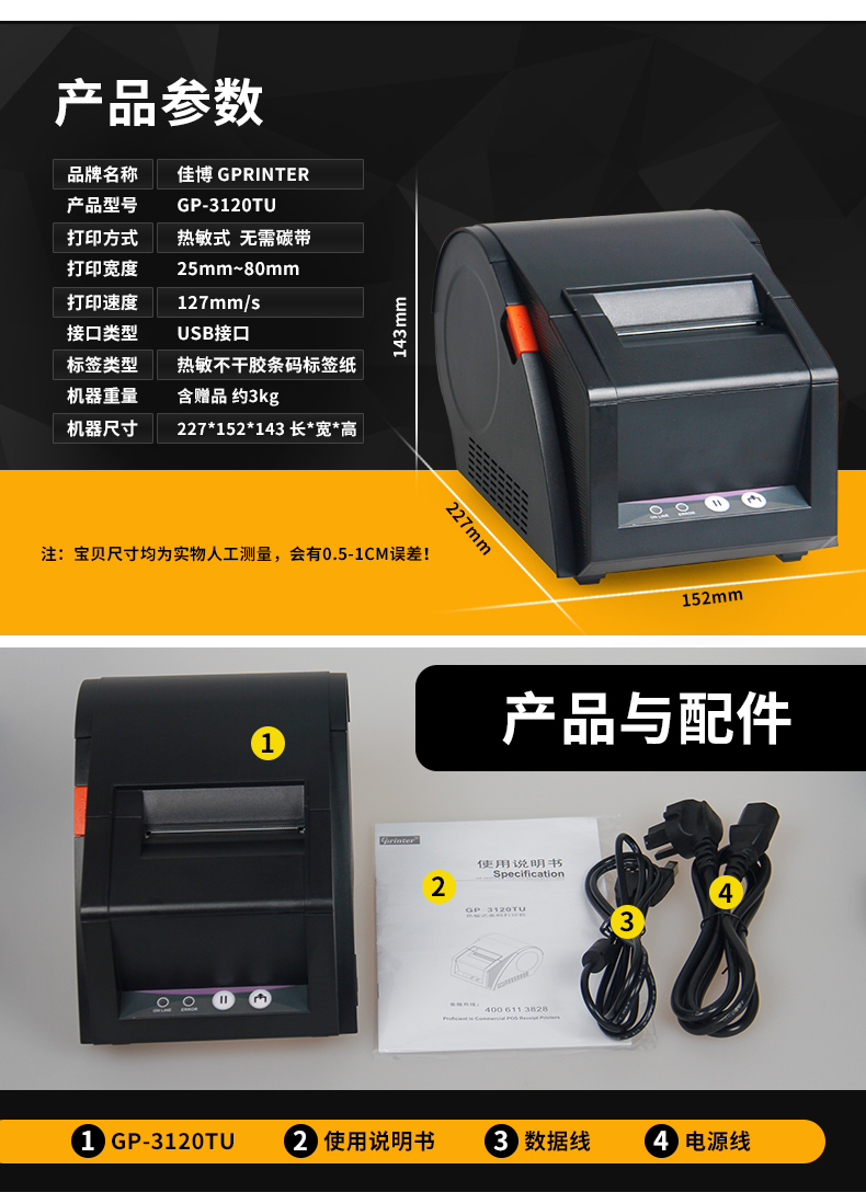Máy in mã vạch nhiệt Jiabo GP3120TU tự dán thẻ quần áo dán mã QR máy in nhãn - Thiết bị mua / quét mã vạch Thiết bị mua / quét mã vạch